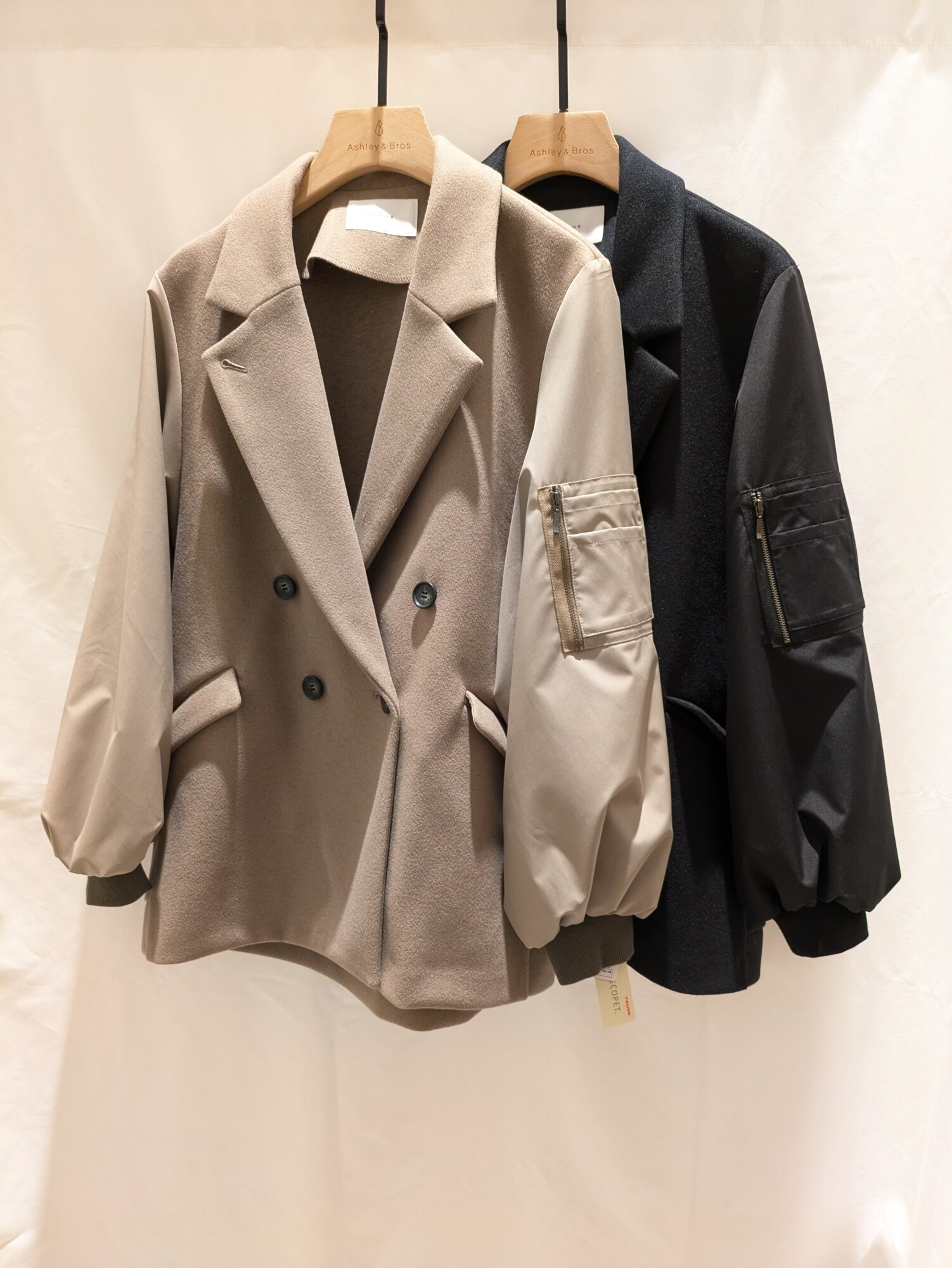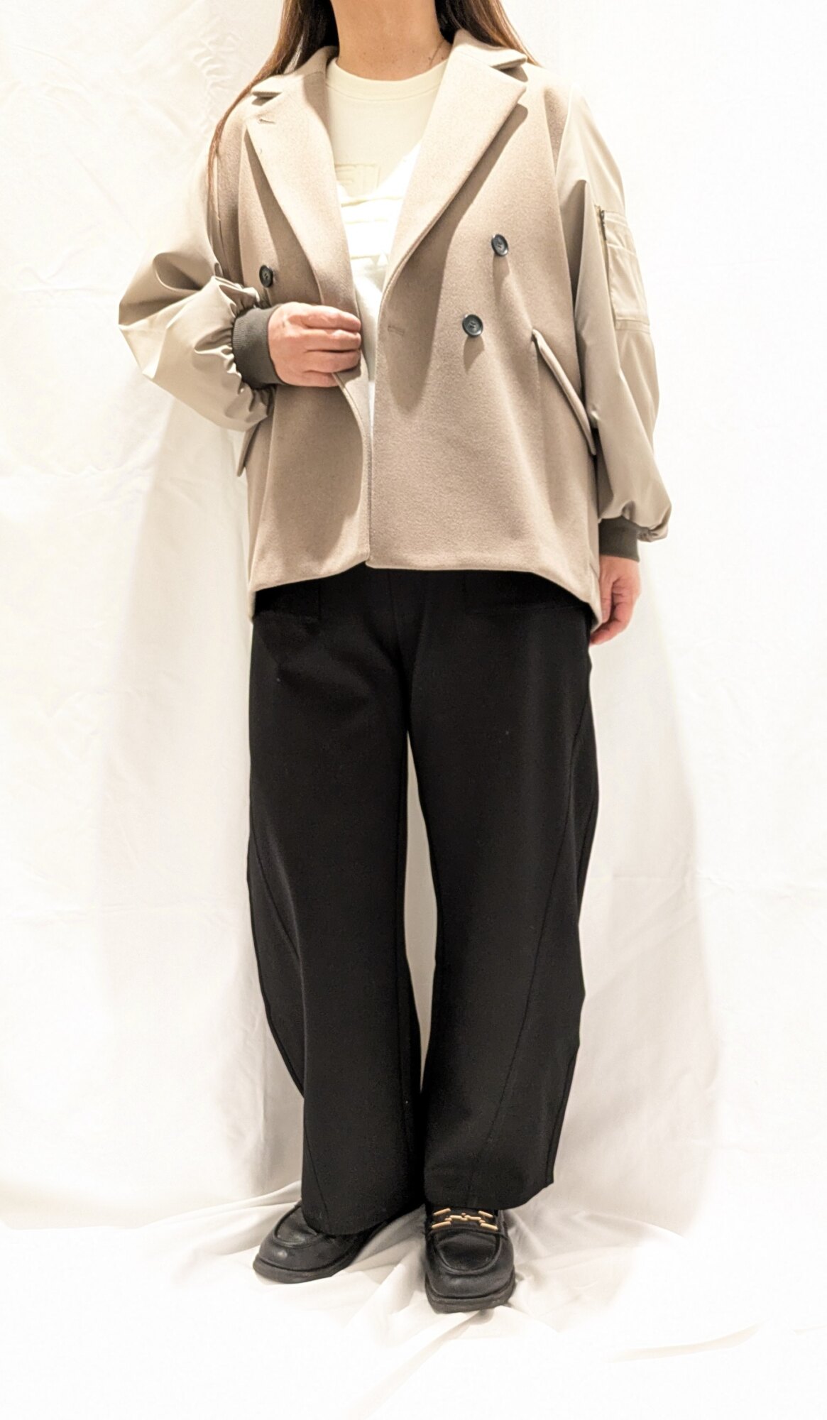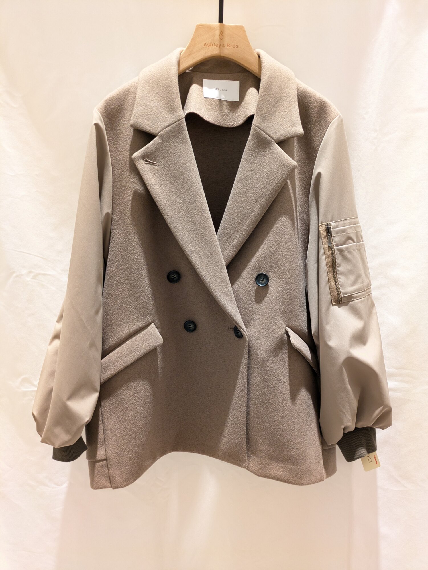 袖がMA-1ライクのカジュアルな印象のピーコート。