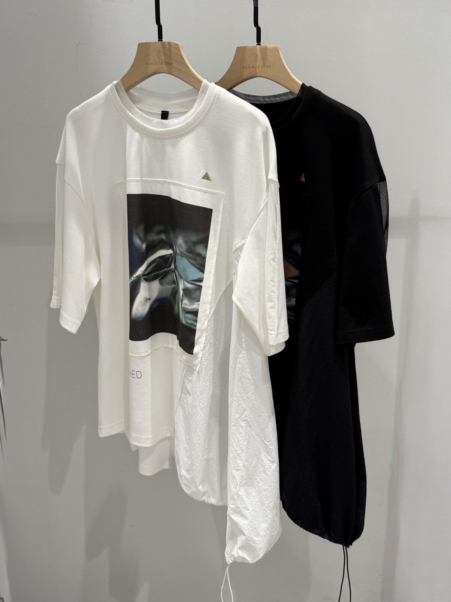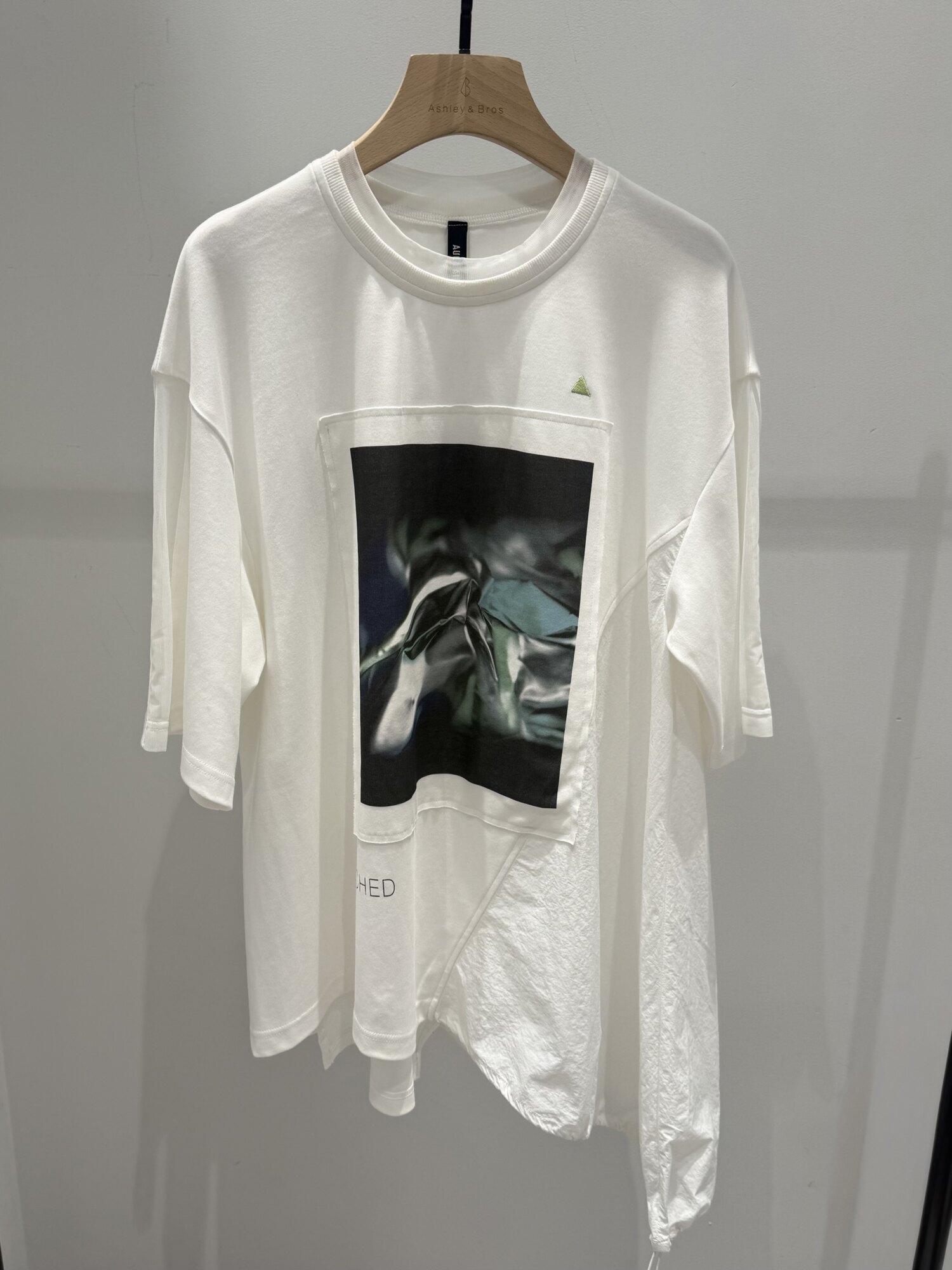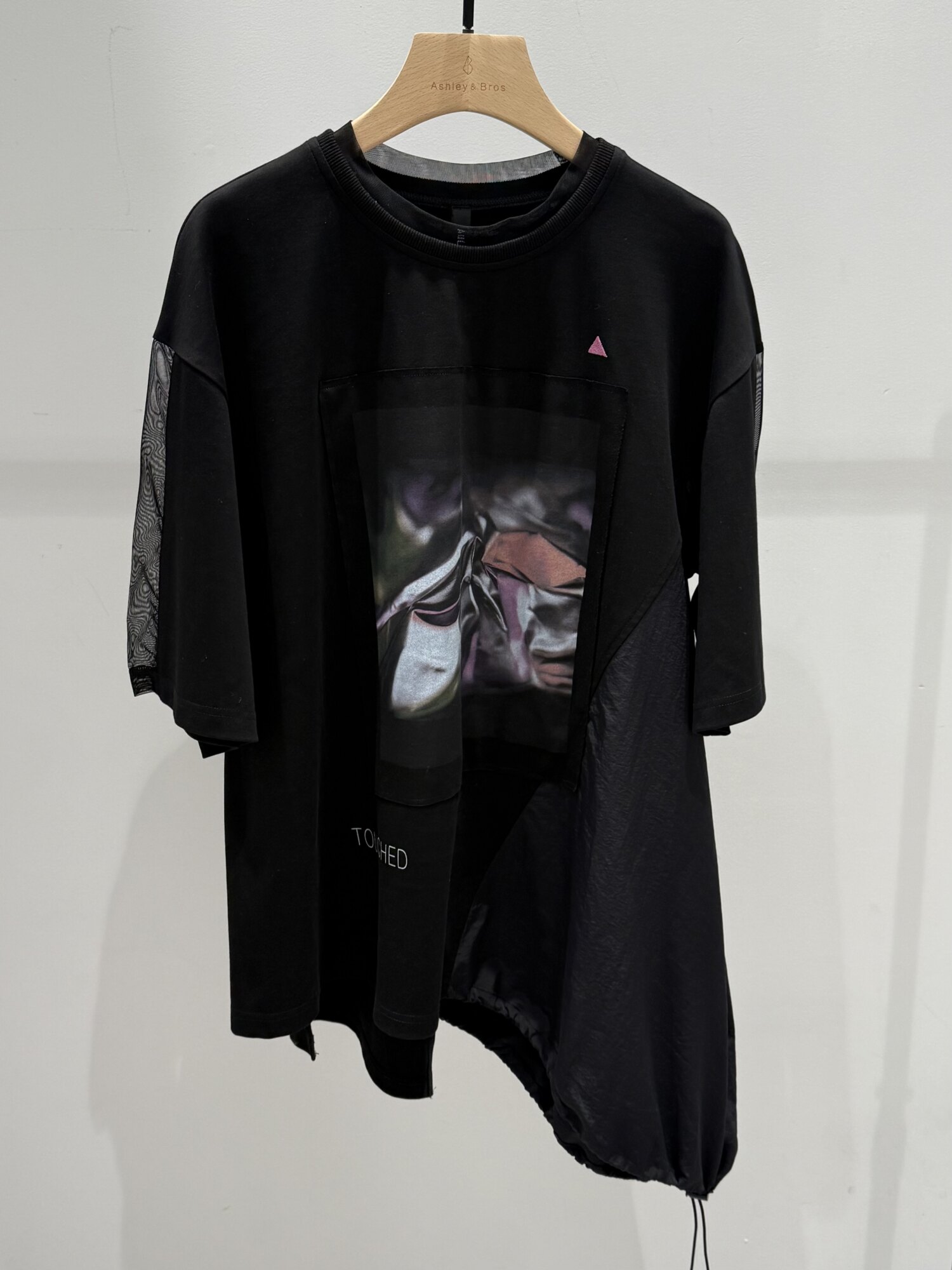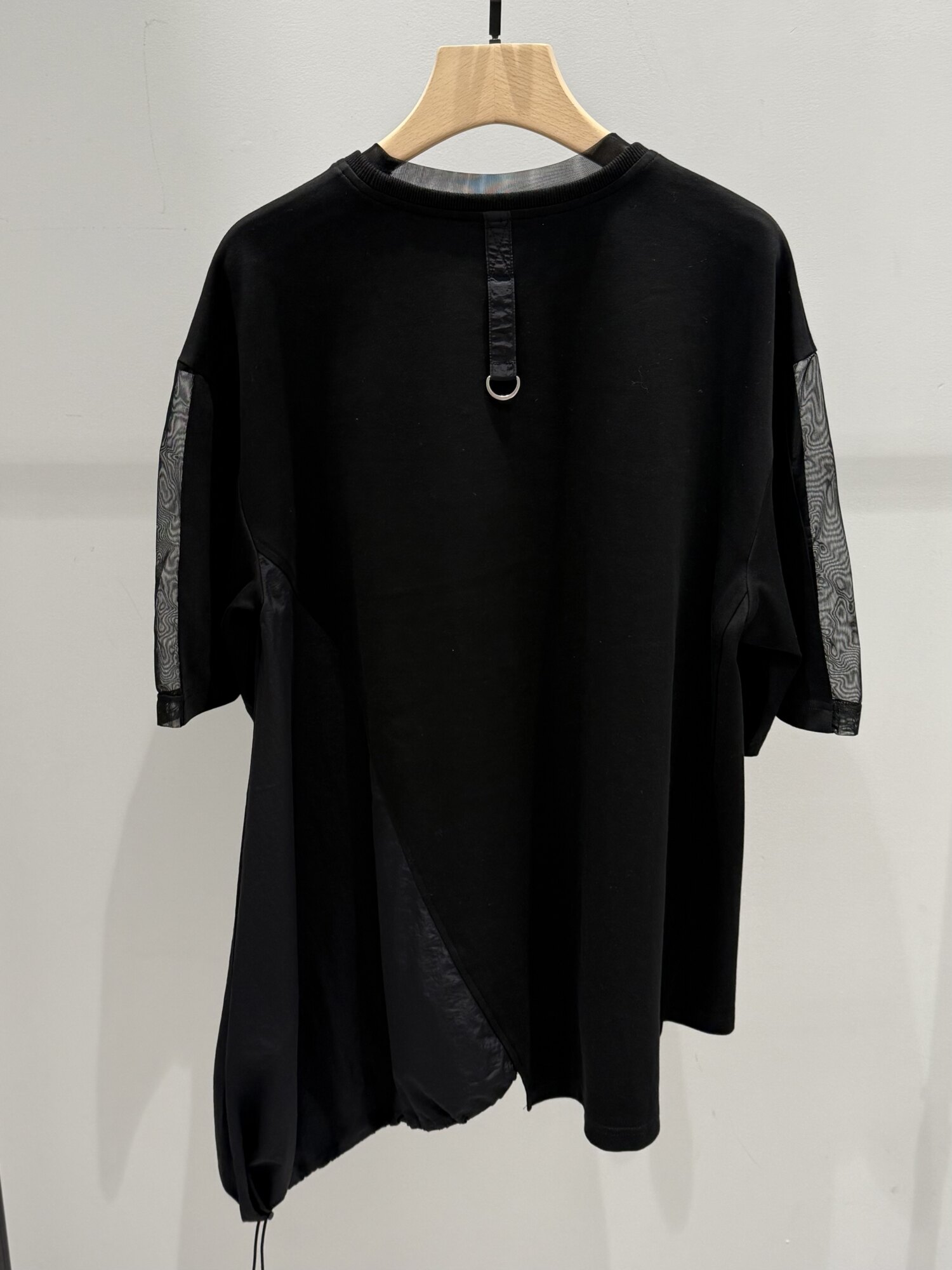 左裾にはタフタの素材を接いでいるので、伸ばしたままビッグシルエットしアシメデザインを楽しむのも◎