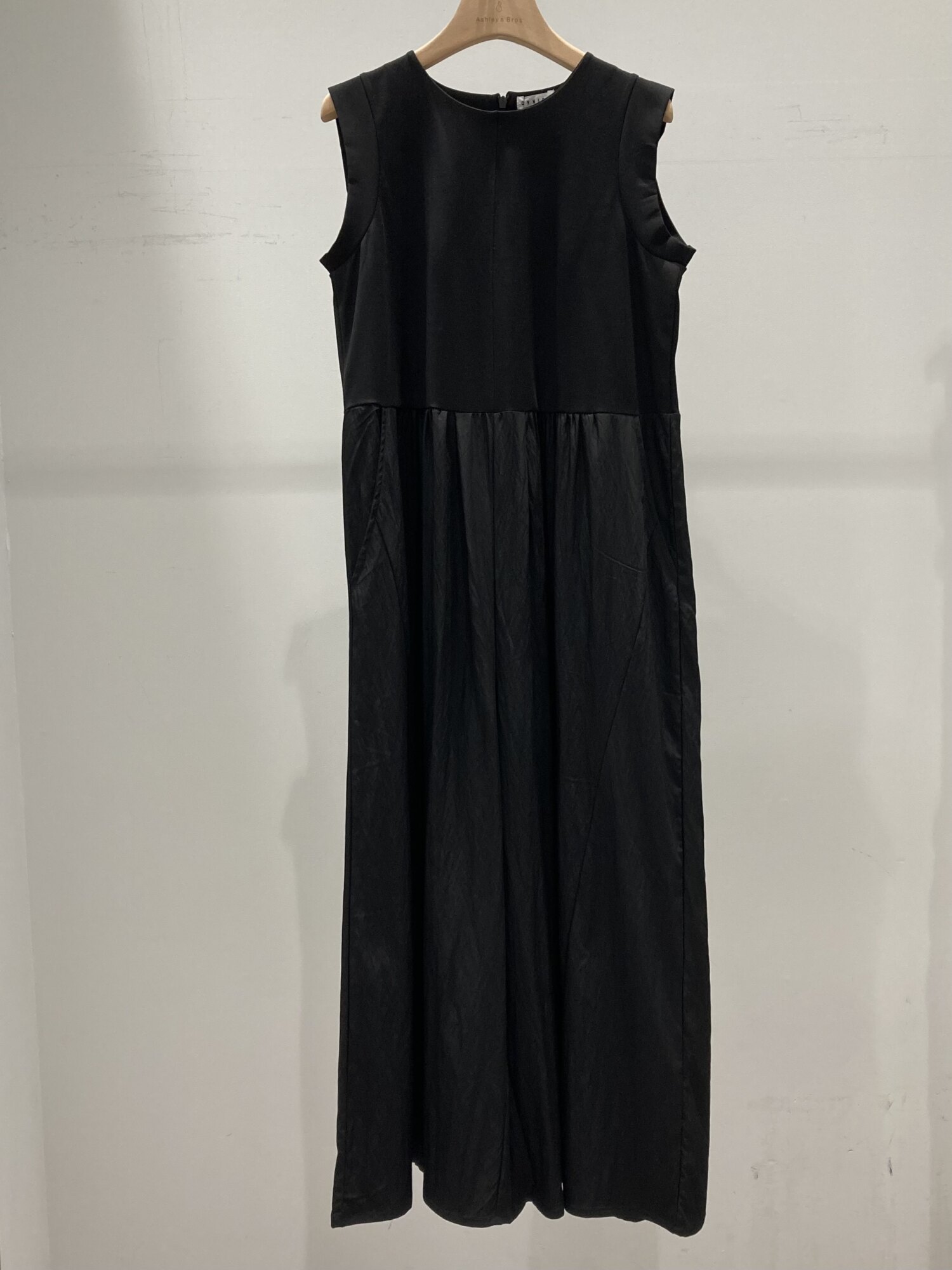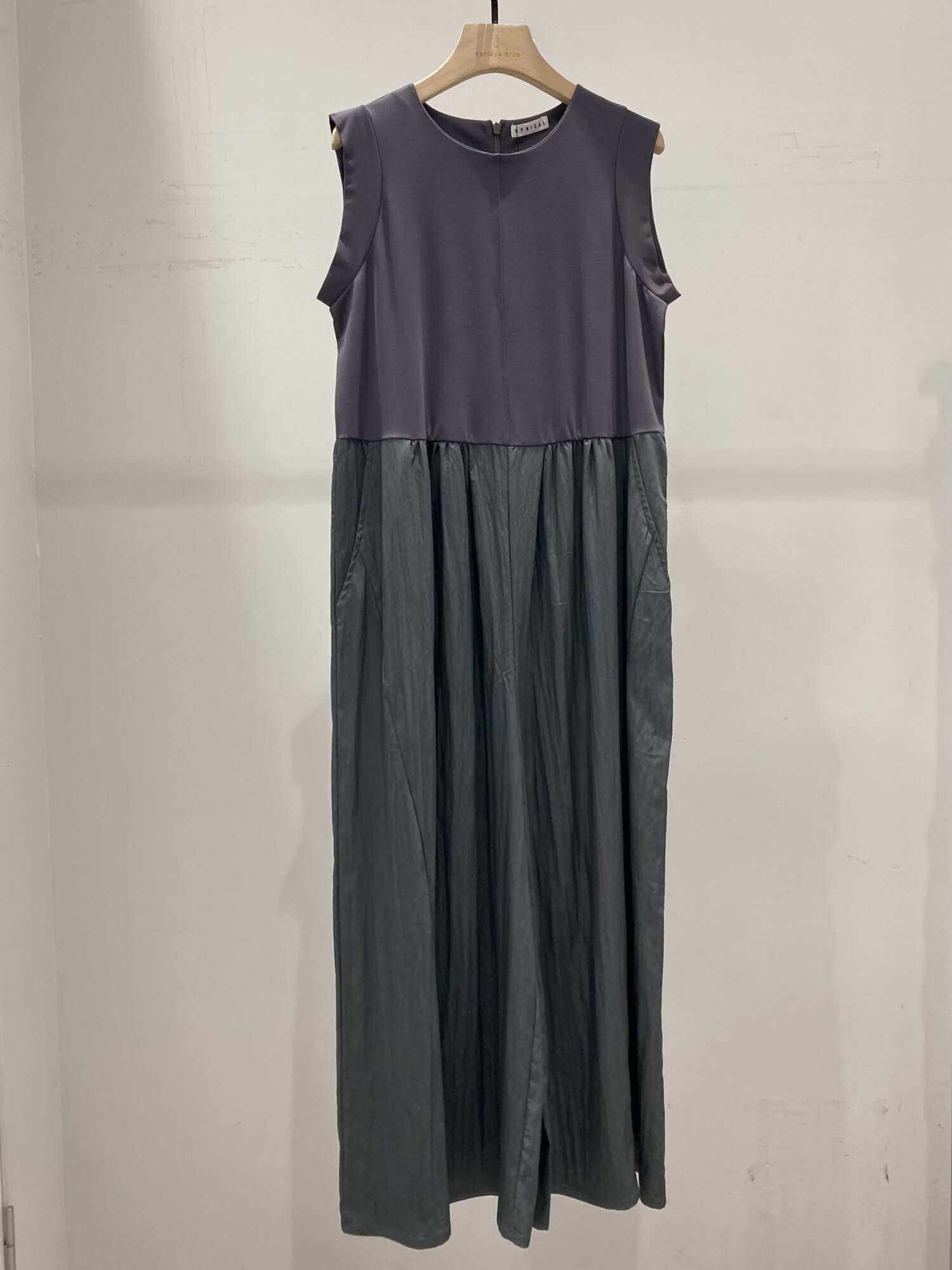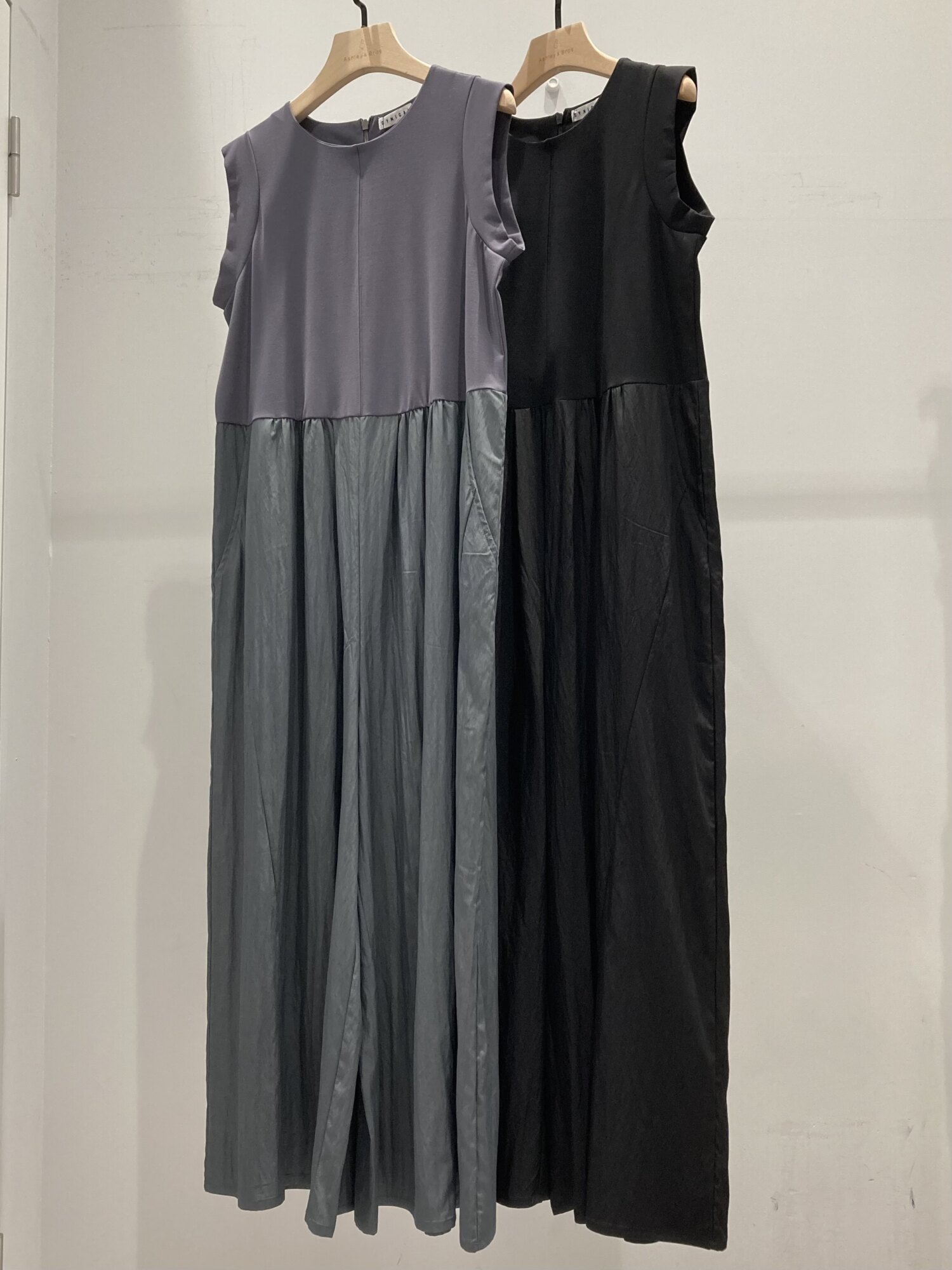 上身頃は、すっきりとしたノースリーブデザイン、ウエスト下からは軽やかなギャザーで程よくボリューム感をプラス。